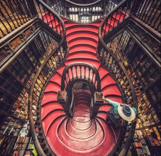 Được đồn đại là nguồn cảm hứng của J.K Rowling khi thiết kế cầu thang di chuyển ma thuật của Hogwart, ngôi trường pháp thuật trong bộ truyện Harry Potter, cầu thang màu đỏ sang trọng ở Livraria Lello đã mang đến “phép thuật” cho Muggles ở Porto, Bồ Đào Nha. Ảnh: PEDRO PULIDO