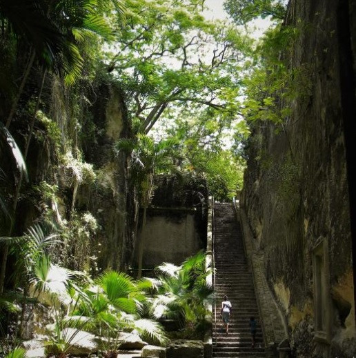 Cầu thang Nữ hoàng là một địa điểm chính nằm trong Khu phức hợp lịch sử Fort Fincastle ở Nassau, Ba Tư. Nó được những người nô lệ đẽo ra từ đá vôi năm 1793 đến 1794 và người ta nói rằng nó đã cung cấp một tuyến đường trực tiếp từ Fort Fincastle đến thành phố Nassau. Những bước bậc thang này sau đó được đặt tên để vinh danh Nữ hoàng Victoria, người trị vì ở Anh trong 64 năm từ 1837 đến 1901. Về mặt kỹ thuật, cầu thang có 66 bước, nhưng chỉ có 65 bước được nhìn thấy do bước đầu tiên được lát bằng nhựa đường trong một dự án phục hồi. Ảnh: TERRY AKIN