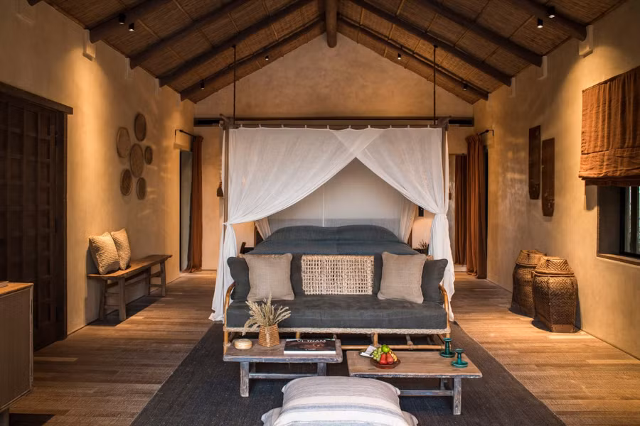 Không gian sử dụng chủ yếu là tre nứa mang đậm chất Việt Nam Ảnh: Zannier Hotels Bāi San Hô