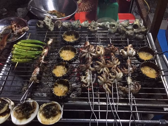 Buổi tối, khu vực cầu cảng thành một chợ đêm nhỏ, với những hàng bán hải sản nướng ngon rẻ cho du khách. Bạn có thể chọn nhum, ốc, sò, bạch tuộc... tươi sống theo ý mình để chủ quán nướng.