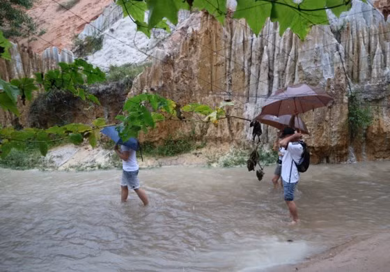 Khi mưa xuống, nước suối chuyển sang màu trắng đục.