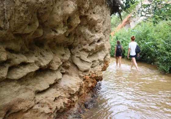 Nước suối Tiên chảy nhẹ nhàng, mực nước thấp bởi vậy du khách đến đây có thể đi bộ dọc lòng suối để cảm nhận sự mát lành ngay giữa vùng đất đầy nắng của vùng đất Mũi Né.