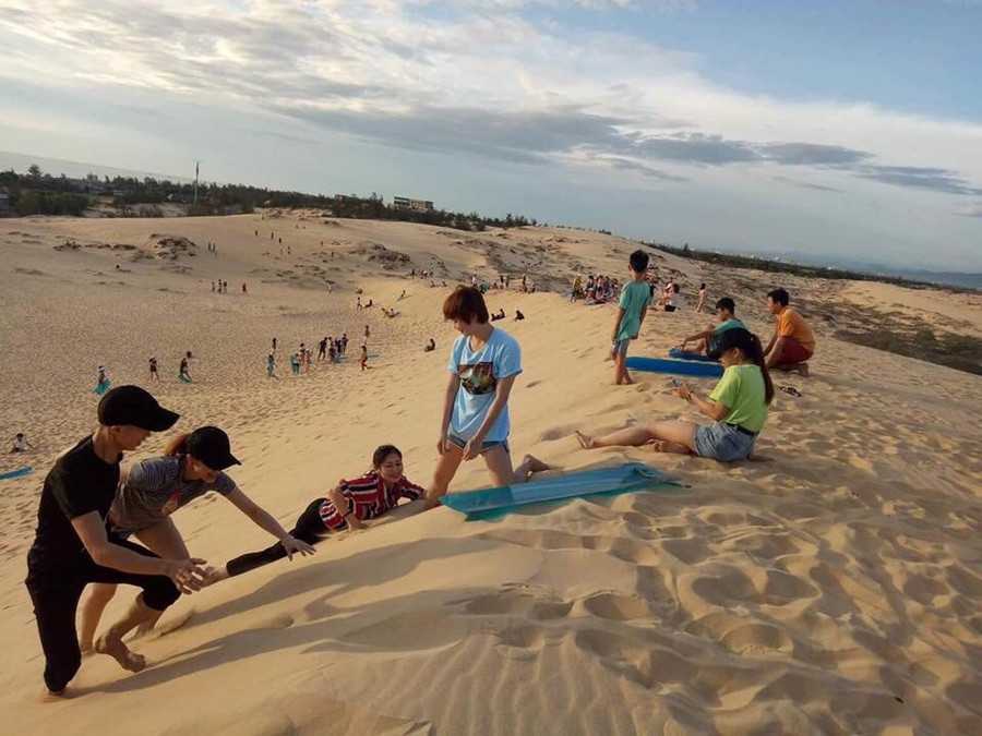 Không dừng lại đó chúng ta sẽ được chinh phục những đồi cát sở hữu cho mình độ cao gần 100m bằng các loại ván trượt giản đơn như mo cau, giấy cứng...