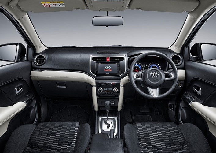 Nội thất xe được thiết kế 7 chỗ thay vì 5 chỗ như thế hệ trước. Nội thất của Toyota Rush 2018 được nâng cấp khá hiện đại. Những tính năng tiêu chuẩn của xe bao gồm: Vô-lăng điều chỉnh, mở cửa không cần chìa, khởi động bằng nút bấm start/stop, camera đảo ngược và 8 loa.
