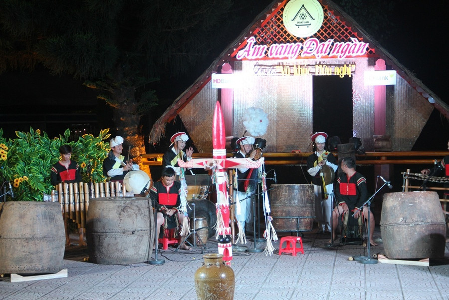 | Các nghệ nhân tỉnh Đắk Lắk biểu diễn tại đêm giao lưu. Ảnh: Hoàng Bình |