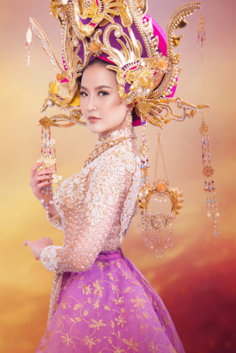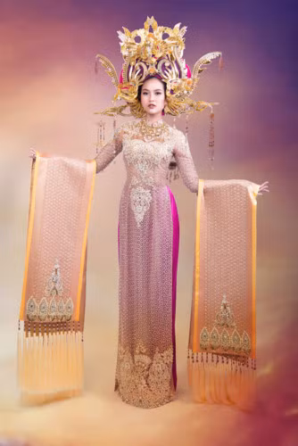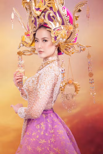 Trang phục dân tộc dự thi Miss Globe - Hoa hậu Toàn cầu của Khánh Ngân lấy cảm hứng từ vẻ đẹp Nam Phương Hoàng hậu.