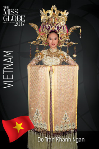 Mang tới cuộc thi Miss Globe lần này, Khánh Ngân chọn một thiết kế của nhà thiết kế Lê Long Dũng để dự tranh phần thi trang phục dân tộc. Bộ trang phục lộng lẫy, sang trọng được lấy cảm hứng từ hình ảnh của Nam Phương hoàng hậu.