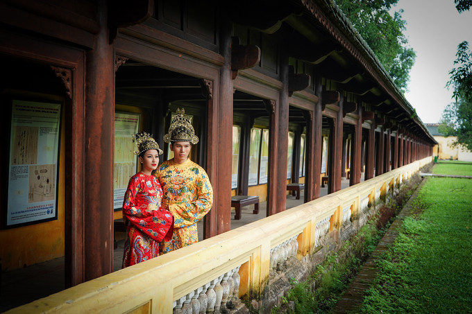 | Ngọc Tình (trái) và Khánh Ngân chia sẻ họ yêu thích kiến trúc của cố đô Huế. Họ cùng thực hiện bộ ảnh để quảng bá một nét cố đô. |