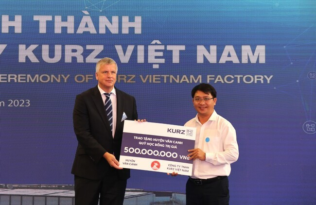 Dịp này, Công ty TNHH KURZ Việt Nam trao tặng 500 triệu đồng cho quỹ học bổng huyện Vân Canh và tặng 700 triệu đồng cho quỹ học bổng Trường Đại học Quy Nhơn.