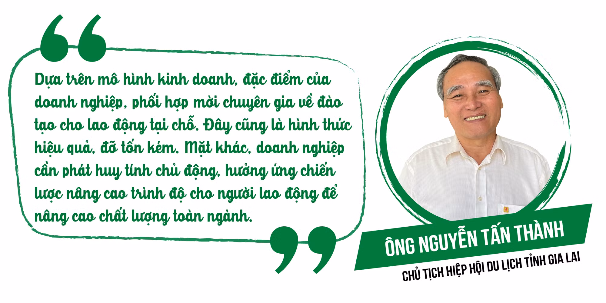 Theo Chủ tịch Hiệp hội Du lịch tỉnh, giải pháp cho vấn đề này là tỉnh cần có chiến lược cụ thể, còn doanh nghiệp cần có kế hoạch thực hiện. Các doanh nghiệp cần chủ động đăng ký nhu cầu tuyển dụng với cơ sở đào tạo. Rà soát tổng thể nhân lực của ngành, thiếu-đủ ra sao để có chiến lược đào tạo.