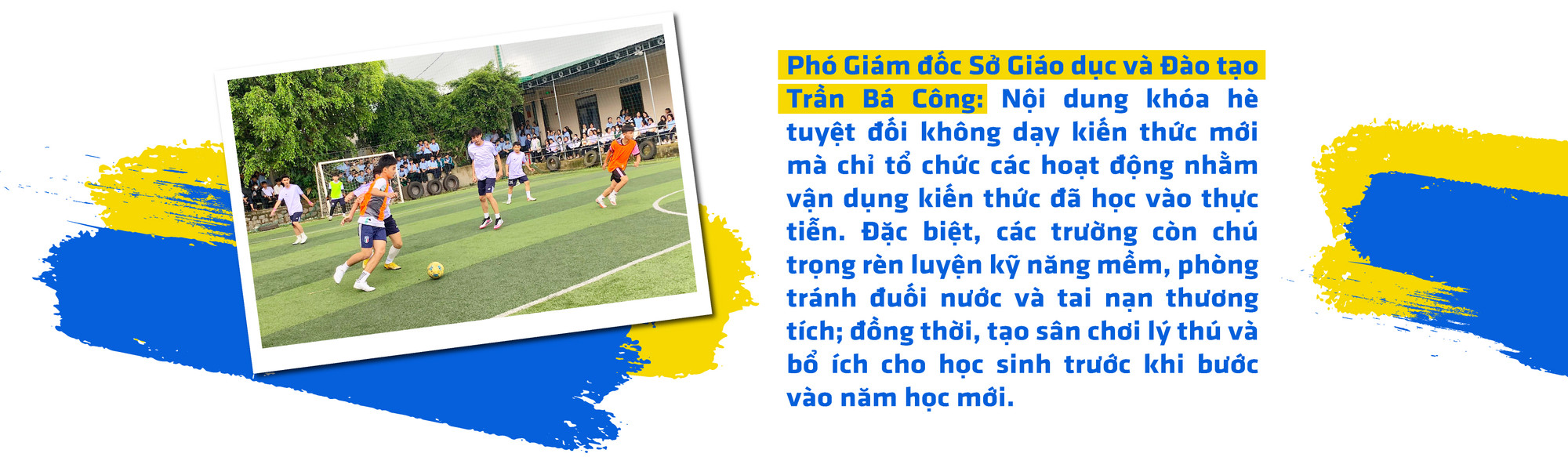 Trao đổi với P.V, ông Trần Bá Công-Phó Giám đốc Sở Giáo dục và Đào tạo-cho hay: Sau khi kết thúc năm học 2022-2023, hầu hết học sinh đều trở về tham gia các chương trình, hoạt động hè tại địa phương. Riêng các cơ sở giáo dục tư thục dựa trên nhu cầu chính đáng của phụ huynh đã mở thêm các khóa sinh hoạt hè với nhiều nội dung hoạt động thiết thực, bổ ích, thu hút nhiều học sinh tham gia trải nghiệm.