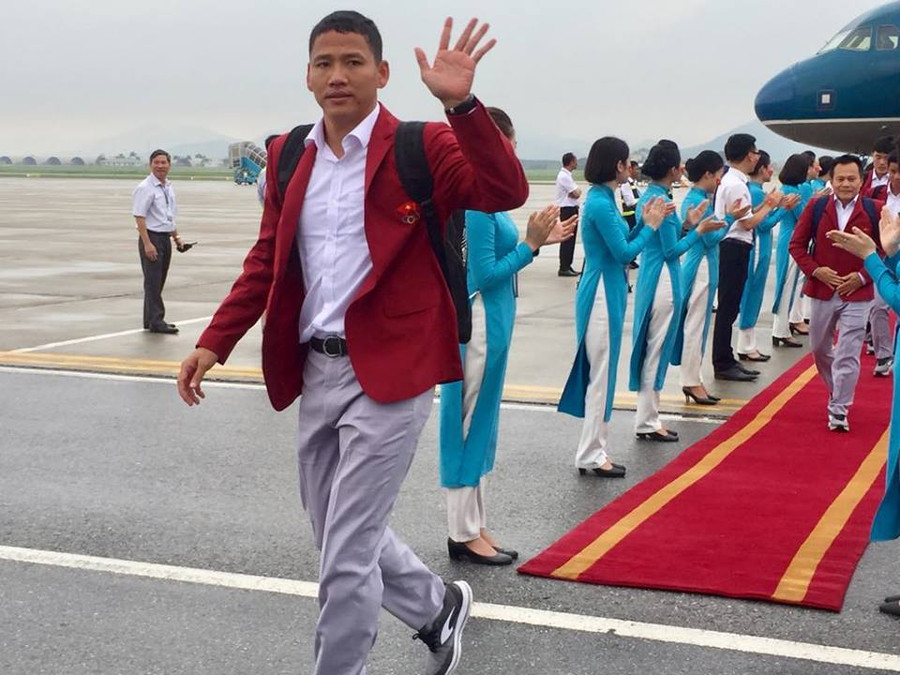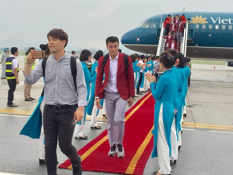 | Nhiều người còn tranh thủ chụp ảnh cùng các cầu thủ Olympic Việt Nam và không quên đăng lên MXH |