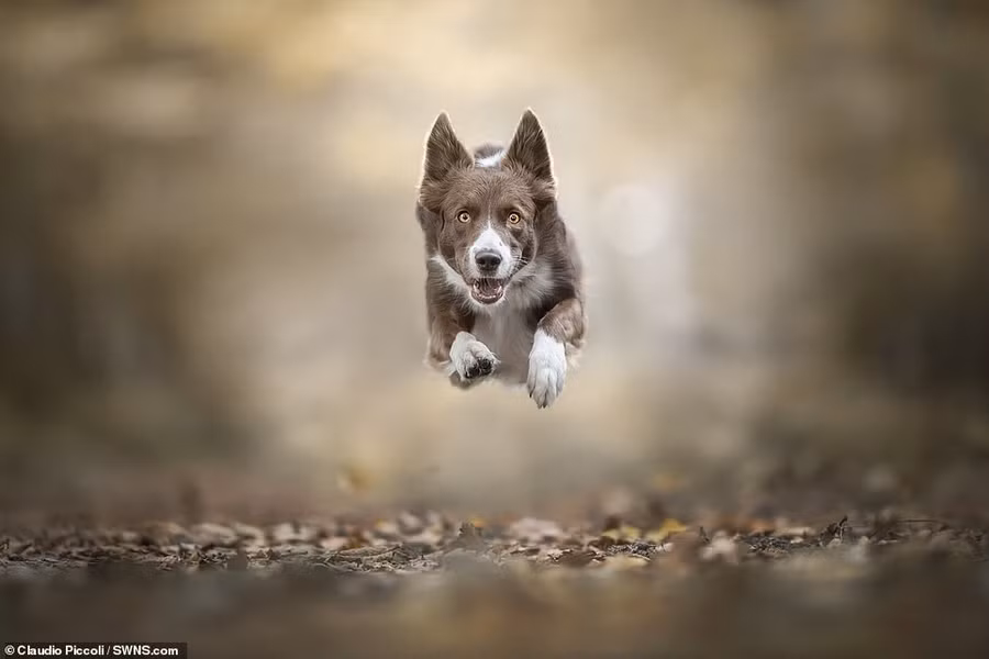 Nhiếp ảnh gia Italia Claudio Piccoli, 48 tuổi, chuyên chụp những bức ảnh động đã ghi lại hình ảnh của những con chó khi nhảy lên không trung, theo Daily Mail.
