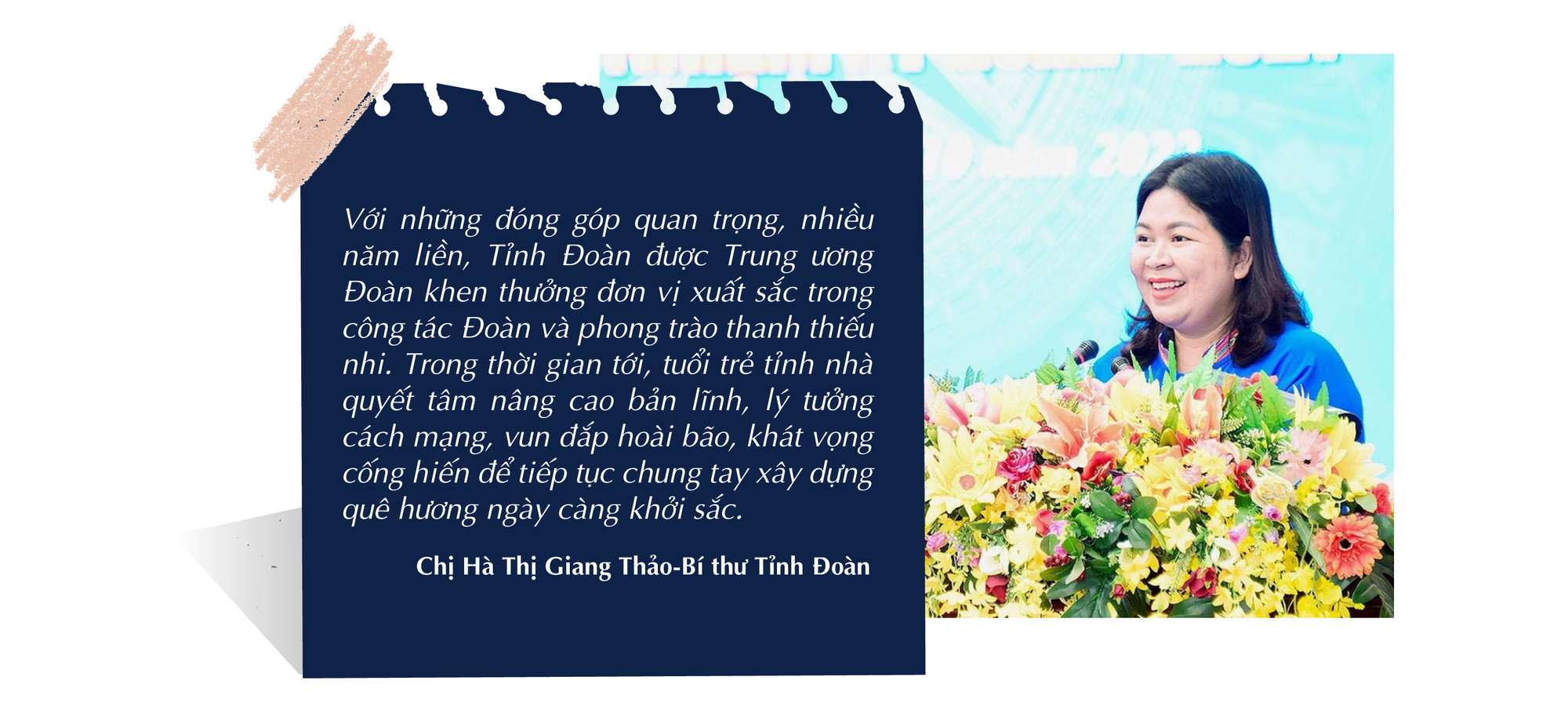 Nói về kết quả đạt được của tuổi trẻ tỉnh nhà thời gian qua, chị Hà Thị Giang Thảo-Bí thư Tỉnh Đoàn-cho hay: Mỗi giai đoạn, mỗi thời kỳ đặt ra cho tuổi trẻ những việc mới, việc khó, đòi hỏi tổ chức Đoàn, ĐVTN phải luôn chủ động, sáng tạo, tiên phong. Thời gian qua, các tổ chức Đoàn trên địa bàn tỉnh đã triển khai các hoạt động, phong trào sát thực tế; ĐVTN sẵn sàng dấn thân vào những nơi khó khăn, đảm nhận các công trình, phần việc để góp phần cùng cấp ủy, chính quyền địa phương xây dựng quê hương ngày càng giàu đẹp.