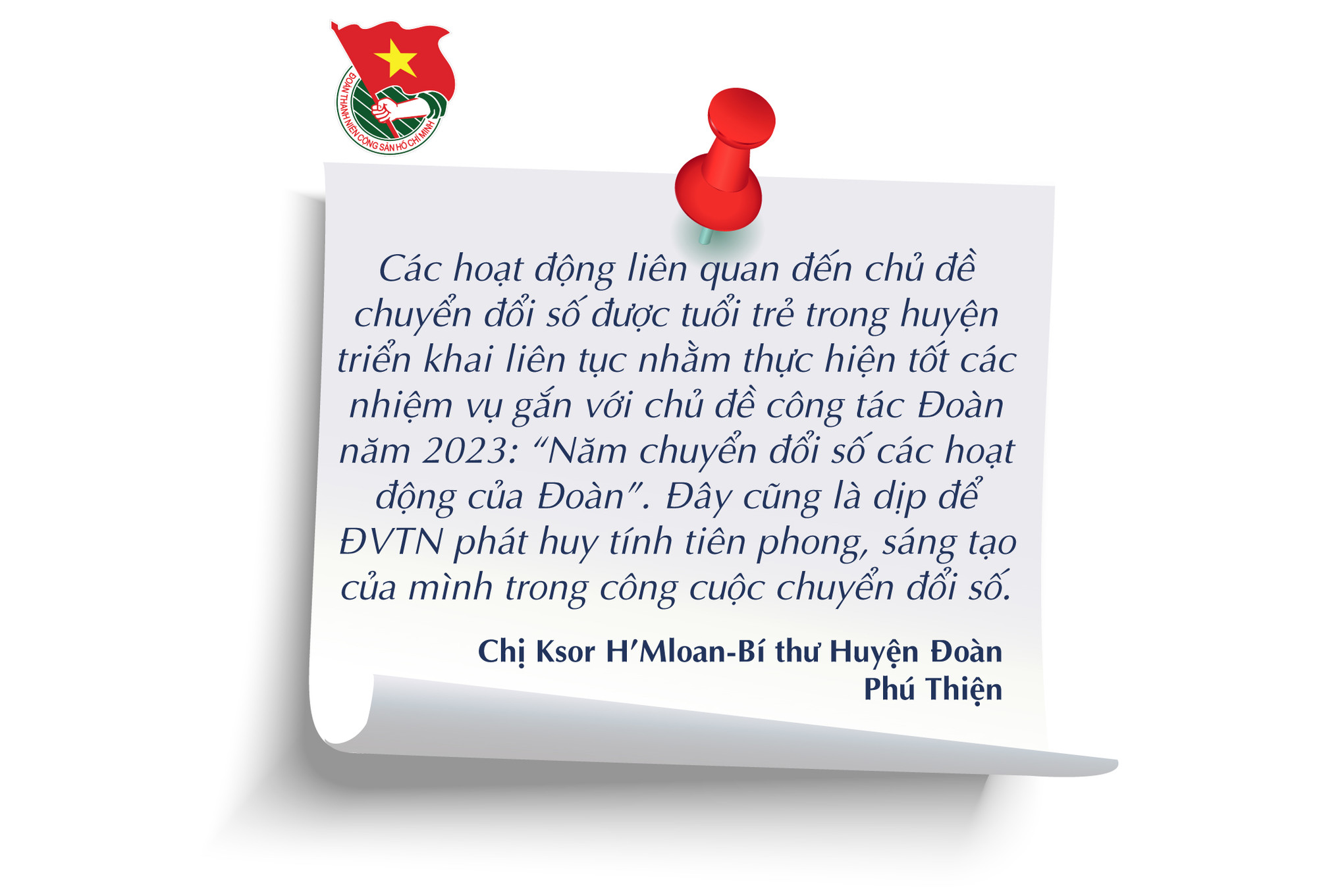 Với tinh thần “Đâu cần thanh niên có, việc gì khó có thanh niên”, các hoạt động tình nguyện của tuổi trẻ Gia Lai được triển khai ở mọi thời điểm, mọi nơi khi người dân cần. Năm 2023, “tiên phong trong chuyển đổi số” là nhiệm vụ được Ban Bí thư Trung ương Đoàn “đặt hàng” cho thanh niên cả nước. Để thực hiện nhiệm vụ này, tuổi trẻ Gia Lai đã chủ động, sáng tạo triển khai các hoạt động, phong trào. Mới đây, Huyện Đoàn Phú Thiện tổ chức ngày hội chuyển đổi số tại xã Ayun Hạ. Tại chương trình, Huyện Đoàn trao 1 bộ máy tính cho Đoàn xã Ayun Hạ để phục vụ công tác Đoàn và phong trào thanh thiếu nhi ở xã. Cùng với đó, Huyện Đoàn Phú Thiện giới thiệu mã QR cung cấp thông tin về Khu di tích lịch sử-văn hóa quốc gia Plei Ơi (xã Ayun Hạ) cho người dân. Đoàn viên, thanh niên và người dân cũng được hướng dẫn cách truy cập: Cổng thông tin điện tử huyện Phú Thiện, Cổng thông tin điện tử tỉnh Gia Lai và cách đăng ký tài khoản dịch vụ công quốc gia, đăng ký tài khoản thanh toán điện tử...