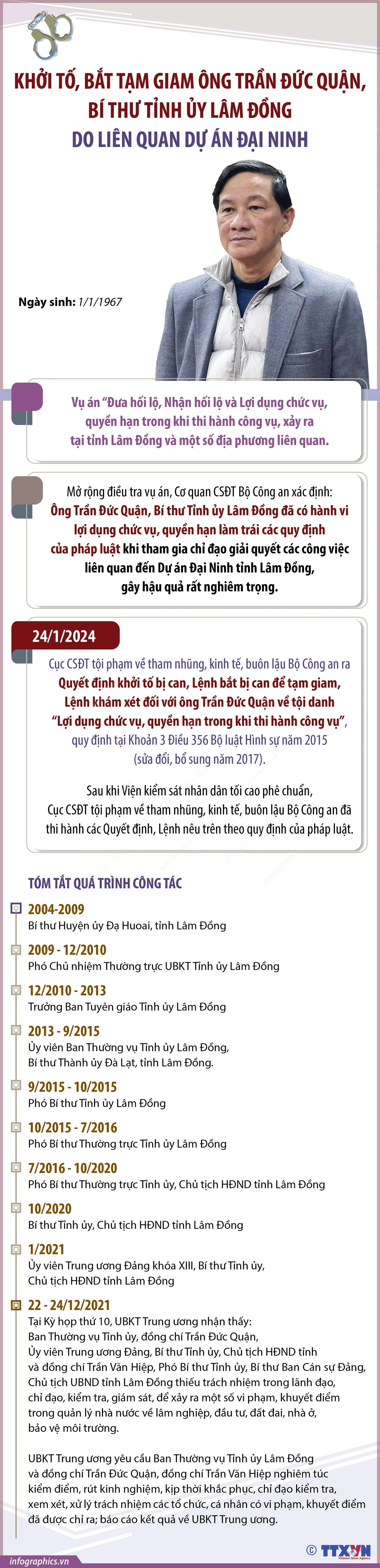 Mở rộng điều tra vụ án, cơ quan công an xác định ông Trần Đức Quận, Bí thư Tỉnh ủy Lâm Đồng đã có hành vi lợi dụng chức vụ, quyền hạn làm trái các quy định của pháp luật khi tham gia chỉ đạo giải quyết các công việc liên quan đến Dự án Đại Ninh tỉnh Lâm Đồng, gây hậu quả rất nghiêm trọng.