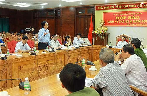 Ông Doãn Hữu Long giải trình về đấu thầu thuốc trong cuộc họp báo tại UBND tỉnh