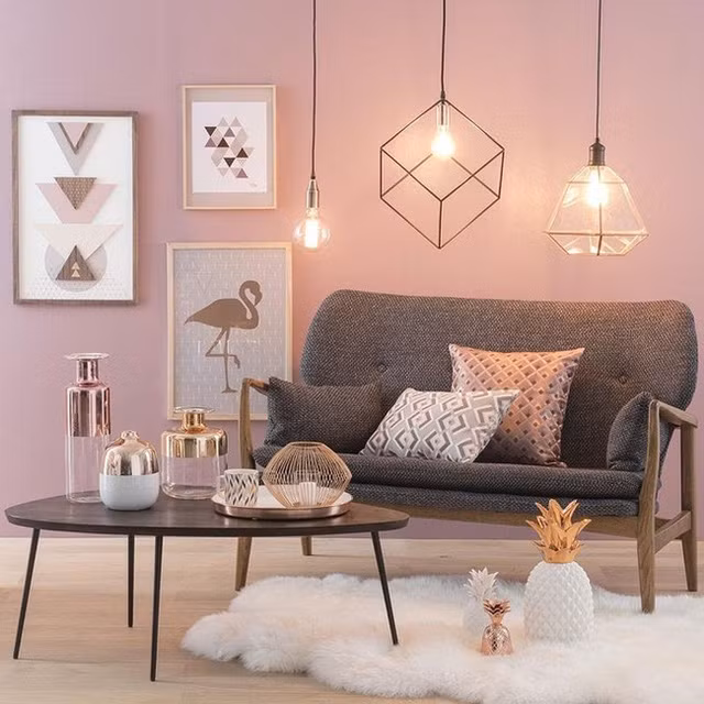 Bạn sẽ bị choáng ngợp bởi vẻ đẹp hoàn hảo, đầy lôi cuốn mà sự kết hợp giữa cặp đôi màu đồng - hồng mang đến không gian sống của mình.