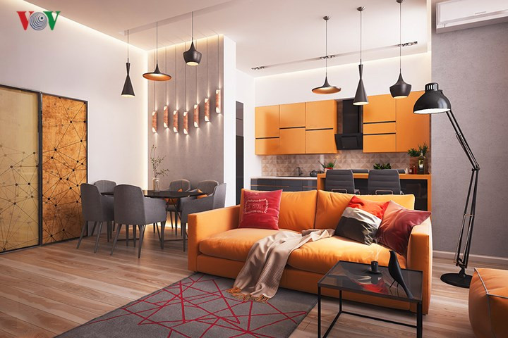 Màu cam trong nội thất luôn gợi sắc thái trẻ trung, hiện đại và tràn đầy năng lượng, hứng khởi.