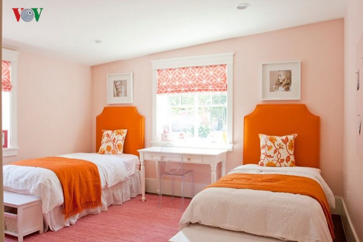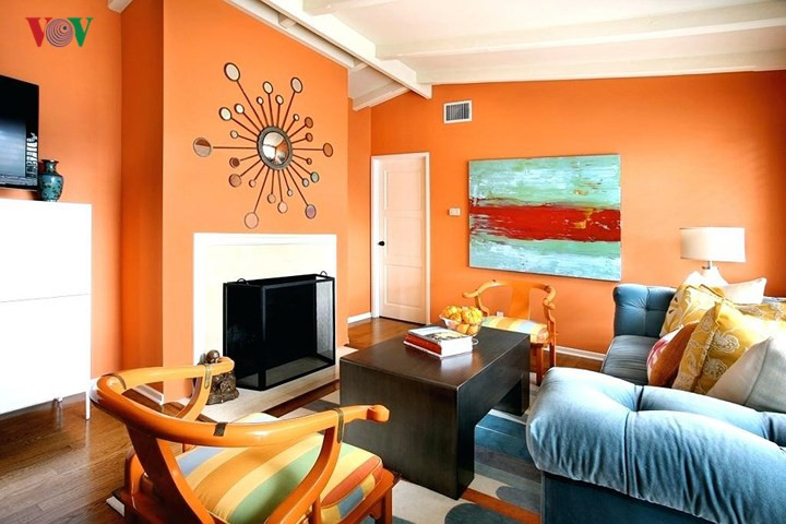 Màu cam gây kích thích sự ngon miệng, phù hợp với những không gian ăn uống. Ở không gian sinh hoạt chung, phòng khách, màu cam cũng là ưu điểm mang tới sự tươi mới, vui vẻ, an lành. Ở phòng ngủ, nếu sử dụng màu cam cần cân nhắc kỹ về vị trí và hàm lượng vừa đủ.