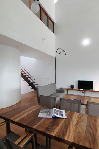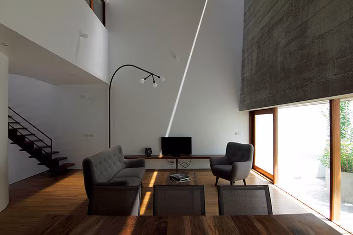 KTS tạo ra một không gian lớn về chiều cao với ánh sáng qua các khe hẹp vào nhà tạo nên những hiệu ứng ánh sáng hấp dẫn.