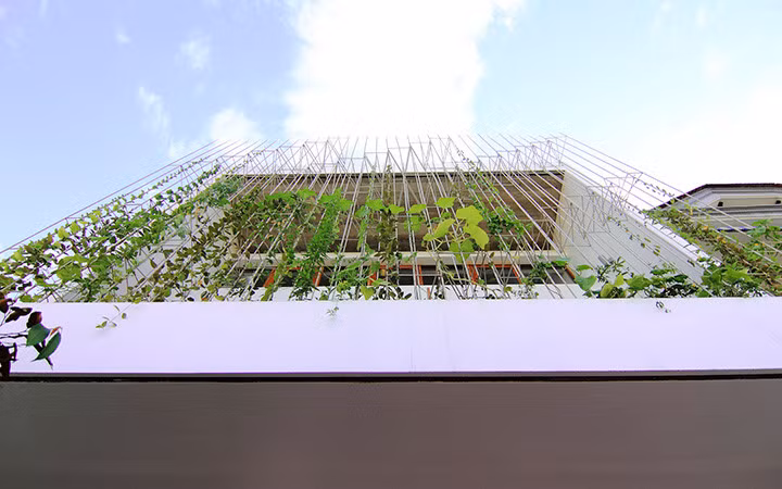 "Hàng rào xanh" tạo cho ngôi nhà một mặt tiền ấn tượng.