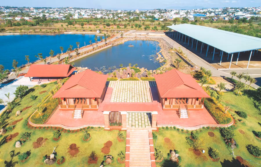 Điểm nhấn của khu du lịch là hồ nước “Mắt Biếc” rộng 15 ha; xung quanh hồ cây xanh phủ bóng mát, cỏ hoa khoe sắc. Dọc bờ hồ, khu du lịch xây dựng các nhà chòi, tiểu cảnh để du khách ngắm cảnh và “check-in”. Bên cạnh đó, thác nước nhân tạo với dòng nước trong veo, mát lạnh toát lên một vẻ rất tự nhiên, yên bình. Dưới chân thác, nước chảy len qua những hòn đá nằm rải rác tạo thành một khung cảnh đẹp như tranh vẽ. Trong khuôn viên khu du lịch còn có quần thể tâm linh tượng Phật Quan Thế Âm Bồ Tát cao hơn 4 m dành cho những du khách yêu thích sự yên tĩnh, an nhiên.