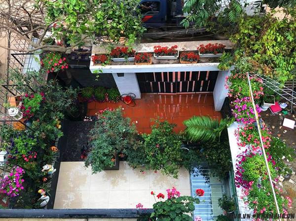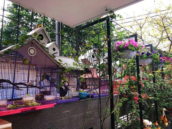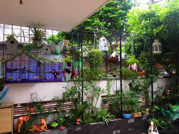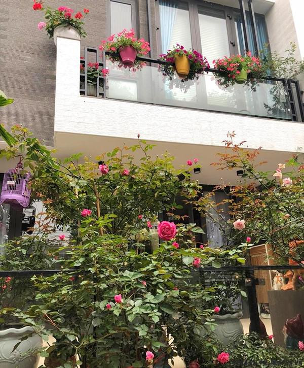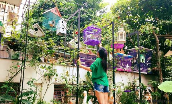 Được biết không gian sống của gia đình chị Linh ở trên con đường Nghi Tàm do một tay ông xã chị thiết kế. Vì biết chị có tình yêu thiên nhiên nên anh dành một khoảng sân phía trước nhà tầm 40m2 cho chị trồng hoa và làm giàn leo, nuôi chim…