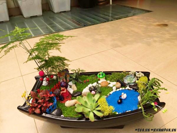 Những tiểu cảnh nhỏ xinh này được chị Linh tận dụng từ nguyên liệu sẵn có để trang trí cho không gian sống của mình.