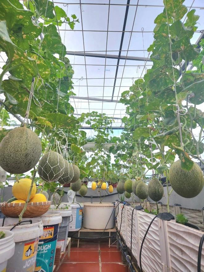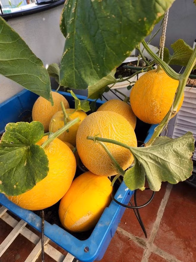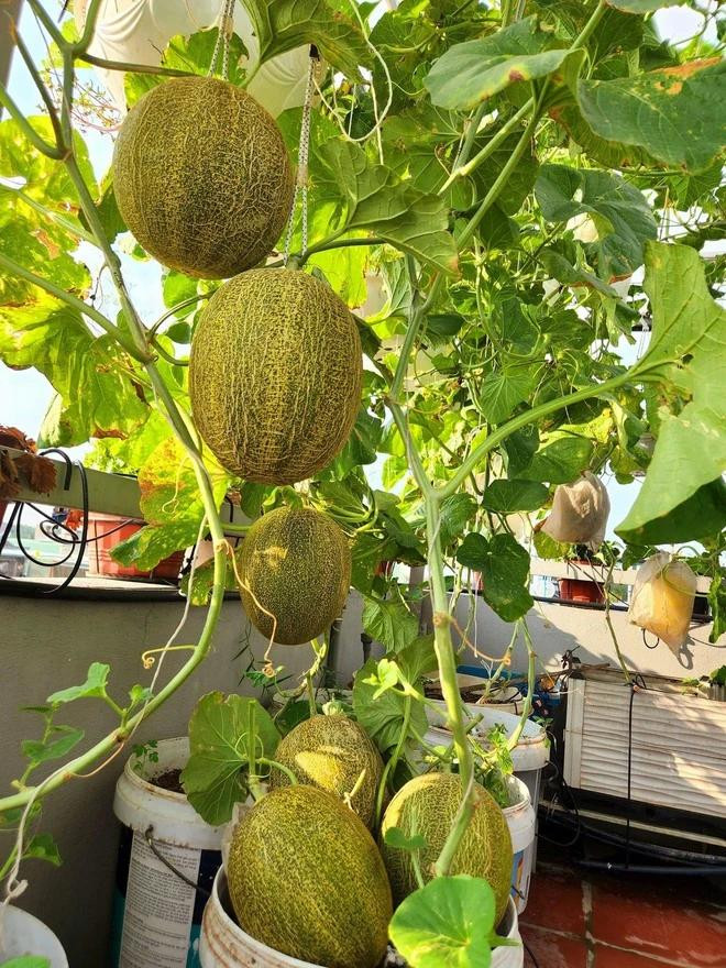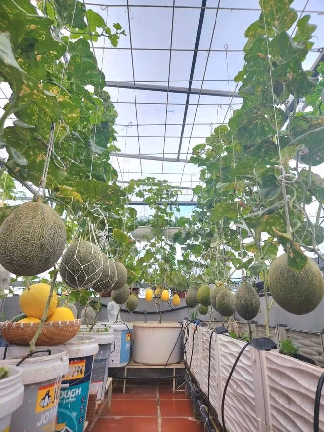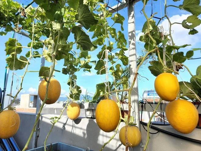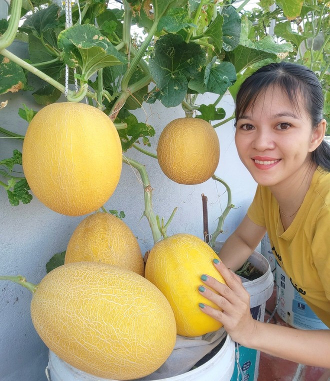 | Dưa lưới trên sân thượng nhà chị Luy. Ảnh NVCC |