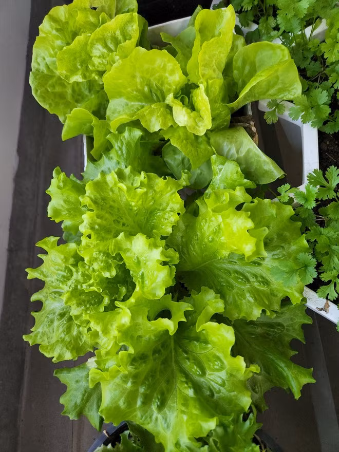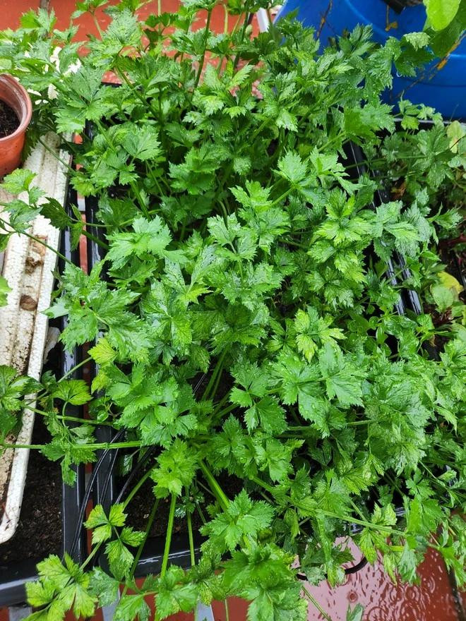 | Nhiều loại rau xanh tươi mơn mởn được chị Luy trồng quanh năm. Ảnh NVCC |