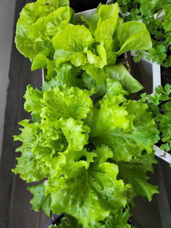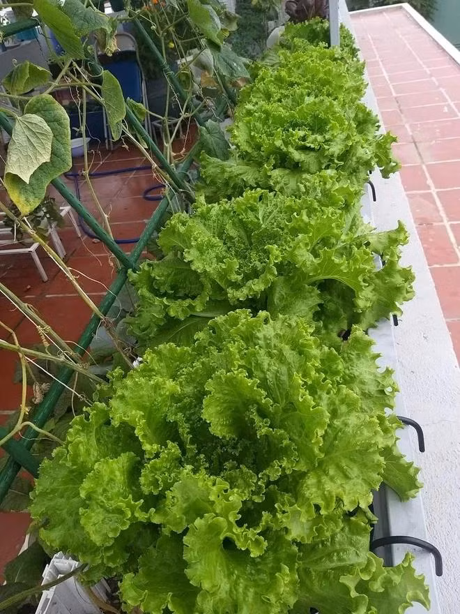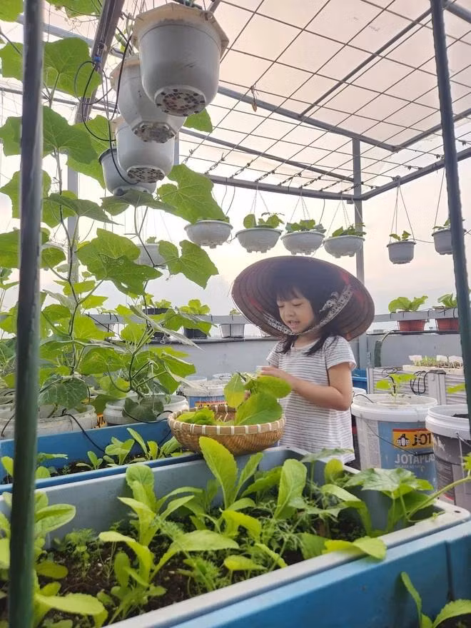 Lúc có ý định làm vườn trên sân thượng, chị Luy đã tham gia các hội nhóm trồng cây trên Facebook để học hỏi rồi áp dụng thử và rút kinh nghiệm để tự hoàn thiện dần. Và ngay từ vụ mùa đầu tiên, khu vườn của chị Luy đã rất tươi tốt, rau trái xum xuê, thu hoạch đến mỏi cả tay. “Mọi người hay khen mình mát tay nhưng tôi hay đùa mệnh hỏa mà mát cái gì. Trồng thì phải chăm chứ không sao cây tươi tốt được”, chị Luy nói.