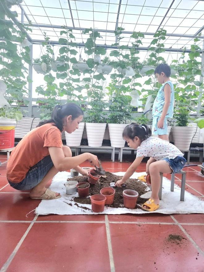 | Khu vườn giúp gia đình chị Luy gắn kết hơn và 2 con nhỏ có không gian để vui chơi, trải nghiệm.Ảnh NVCC |