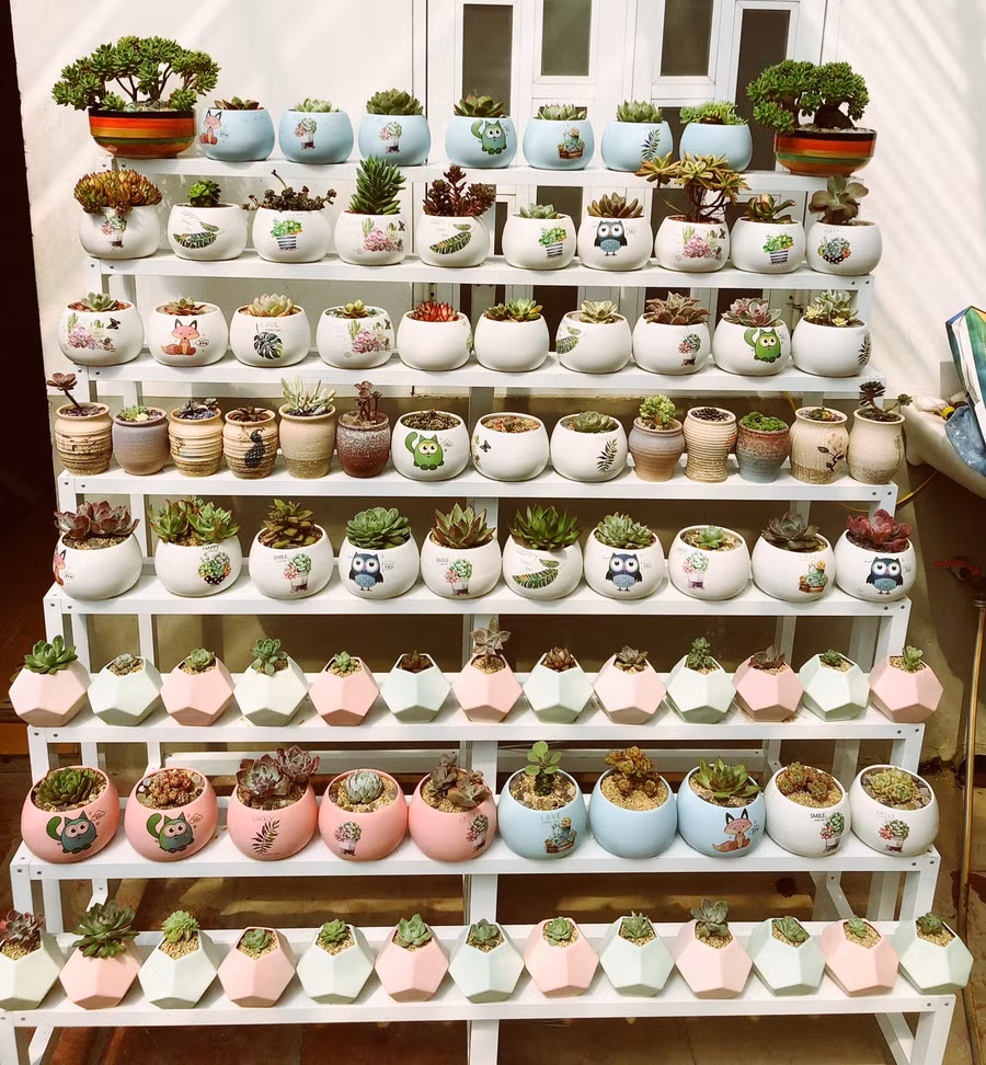 | Anh Phạm Duy Thanh biến mái hiên bé nhỏ của mình thành khu vườn sen đá nhỏ nhắn. Ảnh: NVCC |