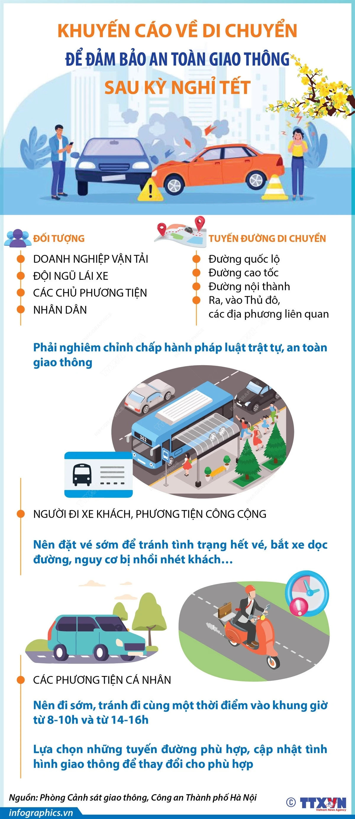 Nhằm đảm bảo giao thông thông suốt, phòng Cảnh sát Giao thông tập trung lực lượng phân luồng, hướng dẫn giao thông tại tất cả các cửa ngõ Thủ đô, các tuyến giao thông chính.