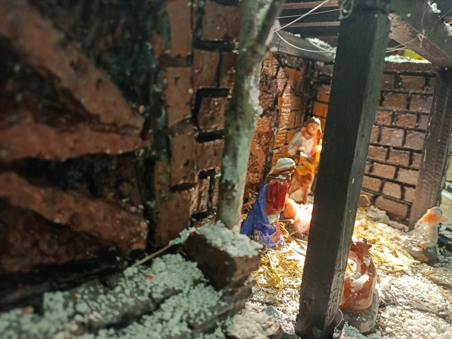 Theo đó, anh Hùng đã tận dụng những thùng xốp bỏ đi ở kho nhà, cùng những gỗ vụn ở xưởng… để làm thành những hang đá theo phong cách Napoli tuyệt đẹp trang trí trong mùa Noel.