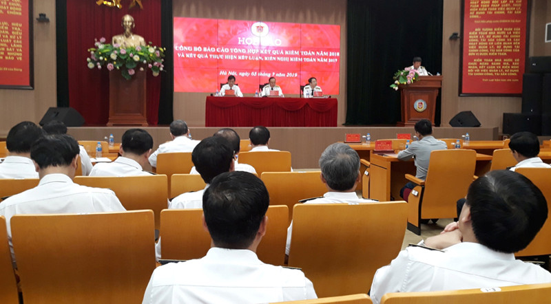 Chiều 5/7, Kiểm toán Nhà nước họp báo công bố Báo cáo tổng hợp kết quả kiểm toán năm 2018 và kết quả thực hiện kết luận, kiến nghị kiểm toán năm 2017.