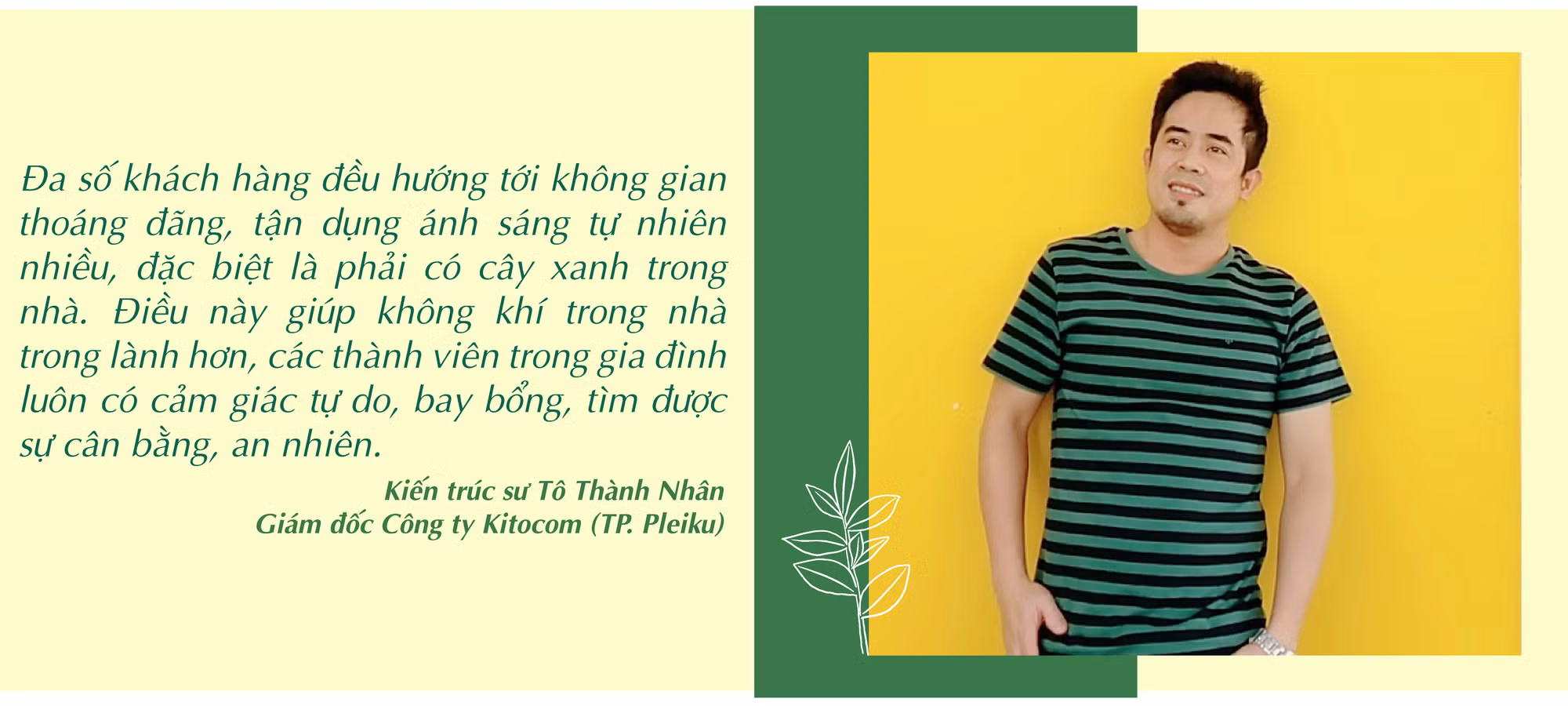 Kiến trúc sư Tô Thành Nhân-Giám đốc Công ty Kitocom (TP. Pleiku) cho biết: Những năm gần đây, phần lớn khách hàng của Công ty đều thích phong cách kiến trúc hiện đại vì đơn giản và chi phí khá thấp. Đối với những ngôi nhà có diện tích nhỏ trong phố, Công ty tư vấn khách hàng nên sử dụng phong cách tối giản, hạn chế vách ngăn, tránh chia nhỏ không gian nhằm tạo sự thông thoáng. Chẳng hạn như phòng ăn, phòng bếp thường thiết kế liền nhau, có giếng trời...