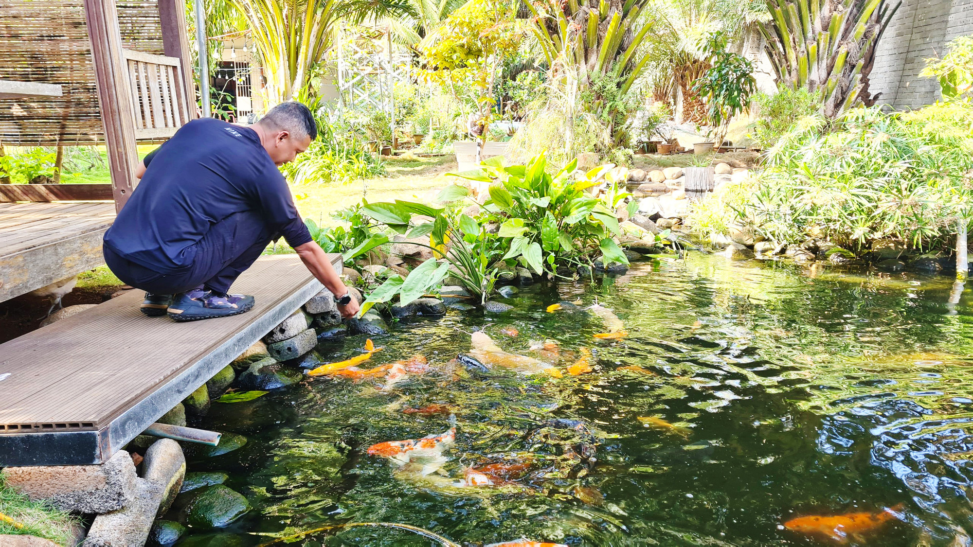 Đến tham quan khu vườn sau nhà của vợ chồng anh Trương Thanh Cường và chị Nguyễn Thị Bích Ngọc (thôn 1, xã Chư Á), chúng tôi phải trầm trồ trước lối kiến trúc tinh tế của không gian khu vườn. Những rặng hoa, cây xanh, tiểu cảnh, xích đu, bàn ghế, hồ cá Koi… được sắp xếp, bố trí rất hài hòa, nghệ thuật. Chị Ngọc chia sẻ: “Cuộc sống có thể sẽ chậm rãi, đẹp đẽ hơn khi cùng nhau sống trong căn nhà có khu vườn trồng nhiều cây xanh, hoa cỏ. Cuối tuần hay dịp nghỉ lễ, tôi cùng các con được vui đùa trên bãi cỏ, cùng nhau trang trí từng góc vườn, tạo cảm giác thư thái sau những ngày làm việc căng thẳng. Với tôi, một khu vườn tươi xanh, không khí trong lành là nơi tuyệt vời để thư giãn”.