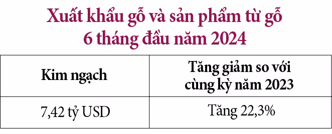 Tính chung 6 tháng đầu năm 2024, xuất khẩu gỗ và các sản phẩm từ gỗ của Việt Nam đạt 7,42 tỷ USD (tăng 22,3% so với cùng kỳ năm 2023).