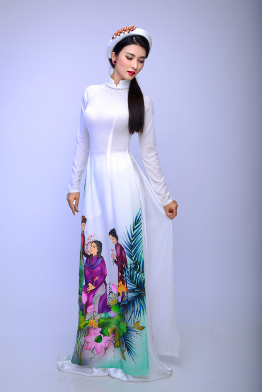 Bộ sưu tập áo dài “Since 1980” của nhà thiết kế Minh Châu lấy điểm nhấn là sử dụng những hình ảnh, con vật gần gũi trong đời sống hằng ngày làm họa tiết trang trí. Màu sắc của áo dài là sự pha trộn khéo léo giữa đỏ, trắng, xanh... cùng các hoạ tiết dân dã về miền quê, cánh bướm, hoa lá.