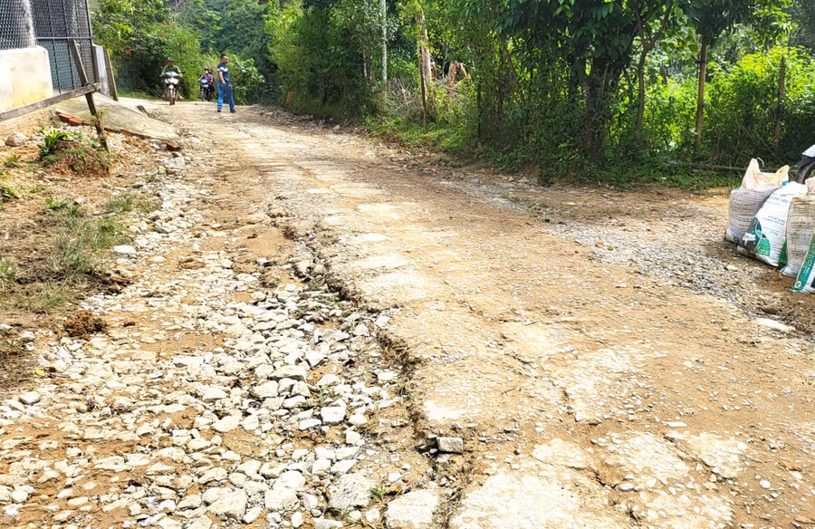 | Đường bị hư hỏng nặng. Ảnh: HN |