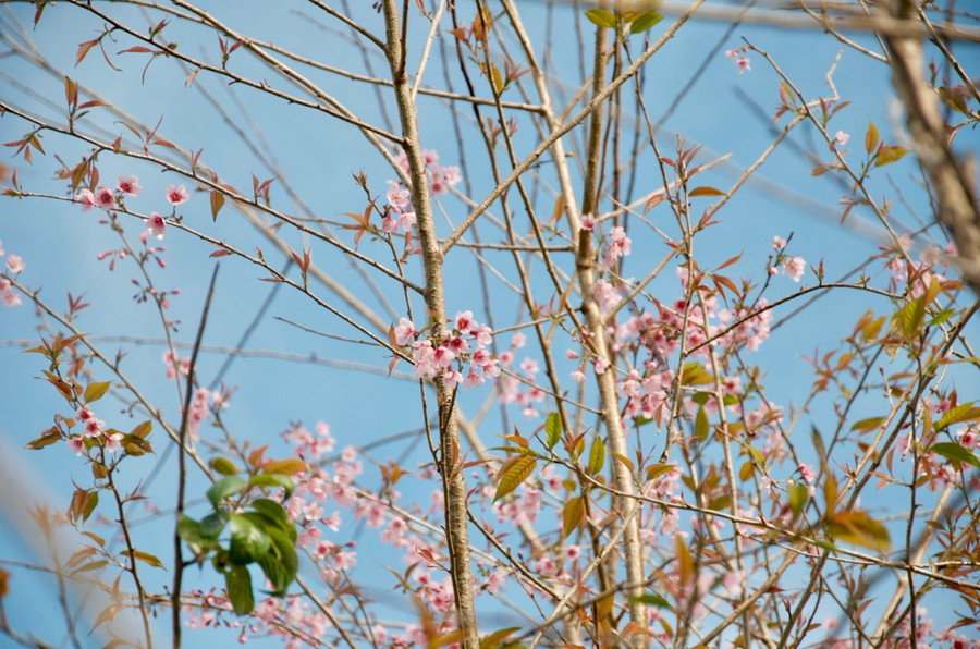 | Những bông hoa mai anh đào đầu tiên nở tại Măng Đen |