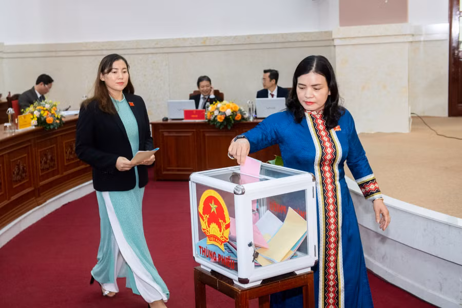 Với tinh thần trách nhiệm cao, 49 đại biểu HĐND tỉnh có mặt tại Hội trường đã tiến hành bỏ phiếu tín nhiệm bằng hình thức bỏ phiếu kín. Phiếu tín nhiệm có 3 mức đánh giá, gồm “Tín nhiệm cao”, “Tín nhiệm”, “Tín nhiệm thấp”.