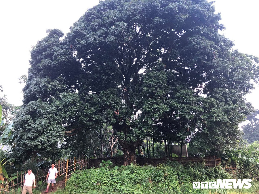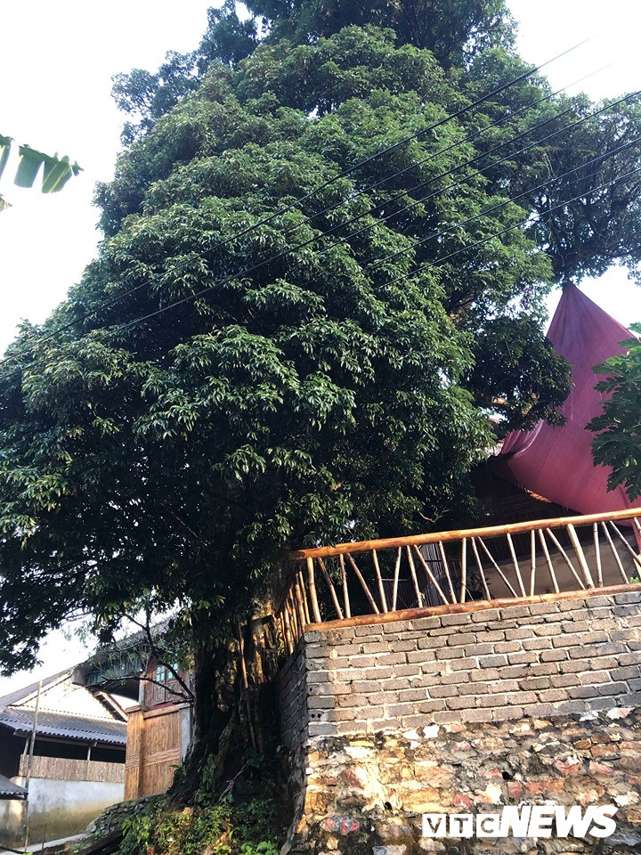 Đứng ngay dưới gốc cây vải trước cửa nhà mình, anh Thạn chỉ tán cây xanh thẫm, vượt lên khỏi những mái nhà sàn, bảo đó là cây vải tổ, chỉ nhỏ hơn cây nhà anh chút xíu, nhưng tán thì che một góc bản. Cây vải đó giờ nằm trong vườn nhà anh Hà Công Tần.