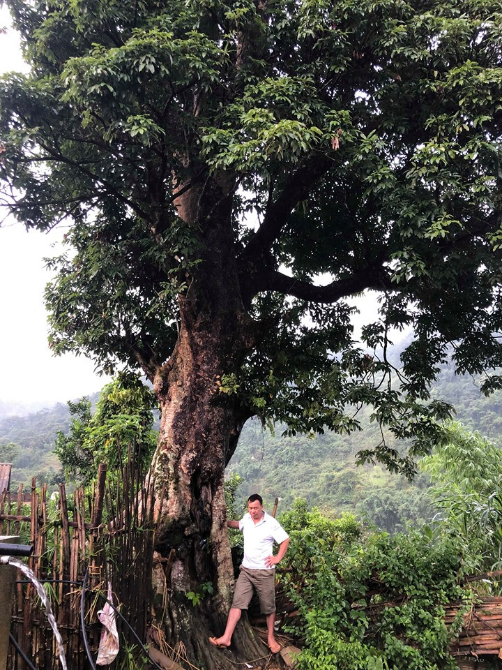 Anh Thạn tính tình vui vẻ, cởi mở như những người Mường xứ Mường Chậm hiếu khách này. Hỏi về nguồn gốc cây vải khổng lồ trước nhà, anh lắc đầu không biết.
