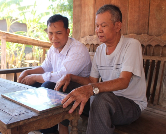 Già Y Khiă (ngồi bên phải) kể về hành trình săn voi của mình. Ảnh: Mộc Miên.