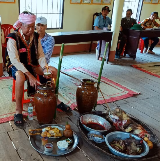 Gìa Y Khiă chuẩn bị cúng sức khỏe cho voi và chủ voi. Ảnh: Mộc Miên