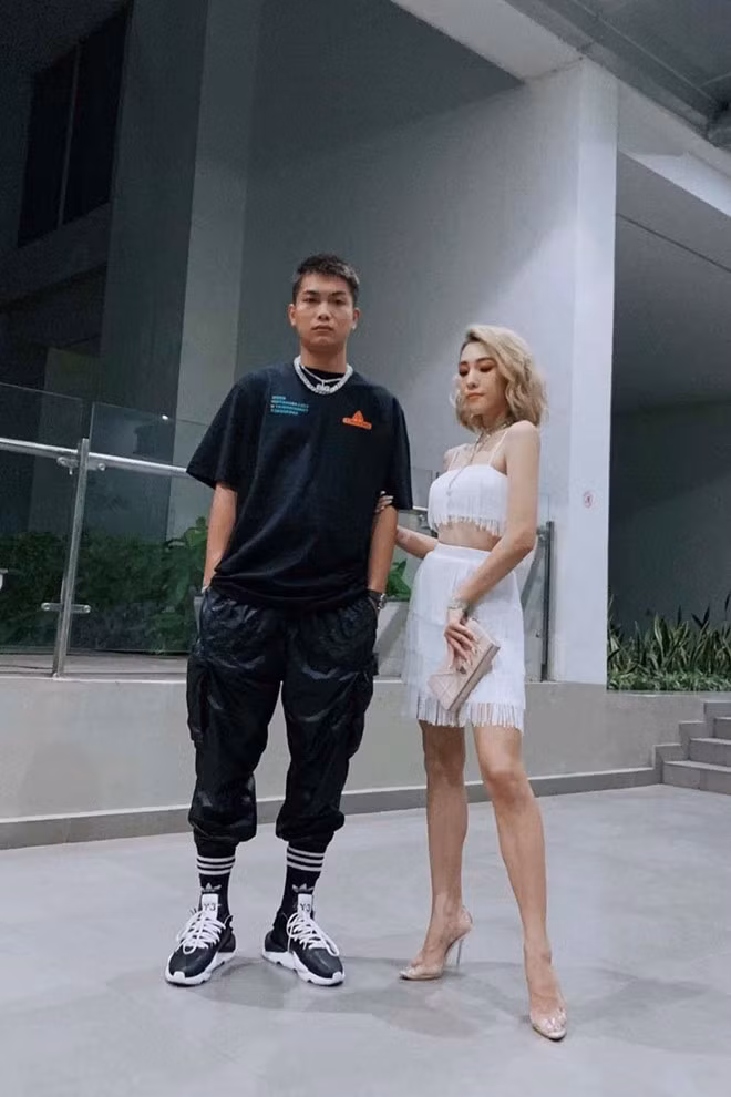 Cặp bạn thân Kỳ Duyên - Minh Triệu vẫn ton-sur-ton mỗi lần xuất hiện cùng nhau. Với thiết kế đến từ một thương hiệu trong nước, cả hai đều chọn áo crop top và quần cạp cao ống loe để "hack" chiều cao, khoe "đôi chân vạn người mê". Minh Triệu lựa chọn phụ kiện Dior, trong khi Kỳ Duyên nhấn nhá một chút màu vàng đến từ nhà mốt Louis Vuitton trị giá 5.500 USD và đôi giày mũi nhọn của thương hiệu Fendi, vòng tay Cartier đắt đỏ.