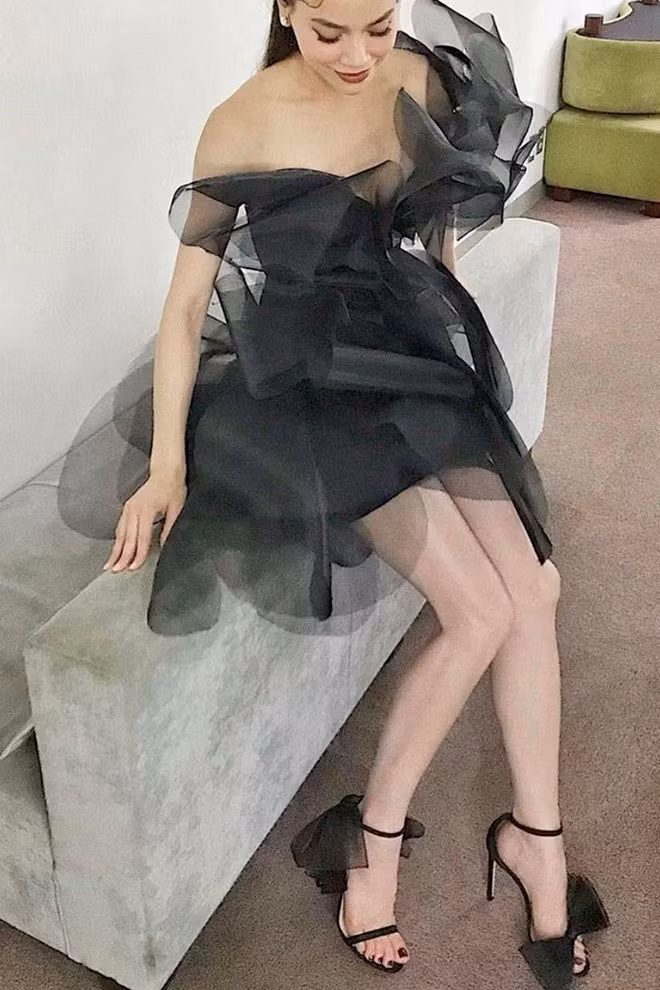Hồ Ngọc Hà xuất hiện tại một sự kiện với thiết kế của người bạn thân Lý Quí Khánh và phụ kiện ton-sur-ton đến từ nhà mốt Jimmy Choo trị giá 975 USD. Người hâm mộ ví nữ ca sĩ như bông hoa hồng đen quyền lực, quyến rũ. Thiết kế này của Lý Quí Khánh giúp khoe vòng eo con kiến và đôi chân thon gọn của giọng ca Vẻ đẹp 4.0.